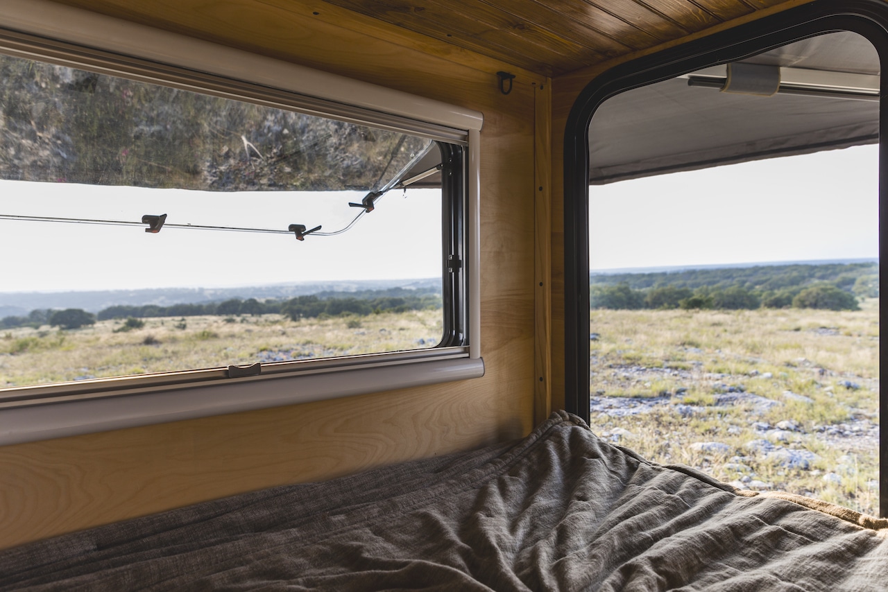 - Space is a luxury in an 8 foot long camper. The galley in most teardrop campers comes up over your legs while laying down. This has been a great use of space in years past, but it makes for a cramped feeling inside. In a PIKE Offroad Camper, 3 full sized adults can sit inside on the bed comfortably because there is no galley in the way. This also allows us to use the biggest window in the industry, (because we have the wall space) creating an open feeling that you can’t get from other small campers.